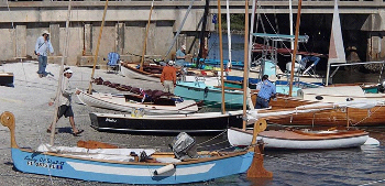 Boats that particularly caught me: The sublime, feather light, twelve foot 'Felucca' built by Robb White. Three Drascombe "Longboat" based, twenty two foot yawls, the most seductive Drascombe shape at anchor or sailing. Lady of Shalott---a seventeen foot motor-sailer---winked from solemn Arthurian legend. And a rakish seven foot nine inch Optimist Dinghy, Black Pearl, was built well and sailed ably by her young master.