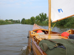 Julitag durch die friesischen Kanäle, er auf seinem Segelkanu Eisvogel, ich auf Artemis. Das