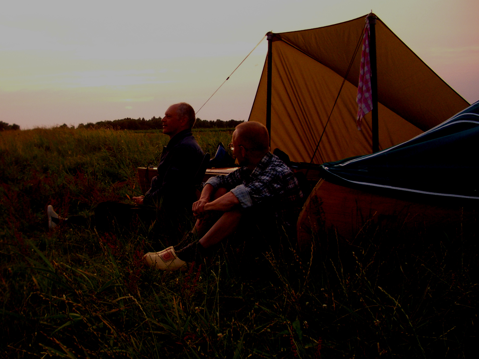 Zum Wochenende kam uns Koos mit seinem Segelkanu Wolf besuchen, und brachte sein überdimensioniertes Luggersegel mit. Auch Enno und